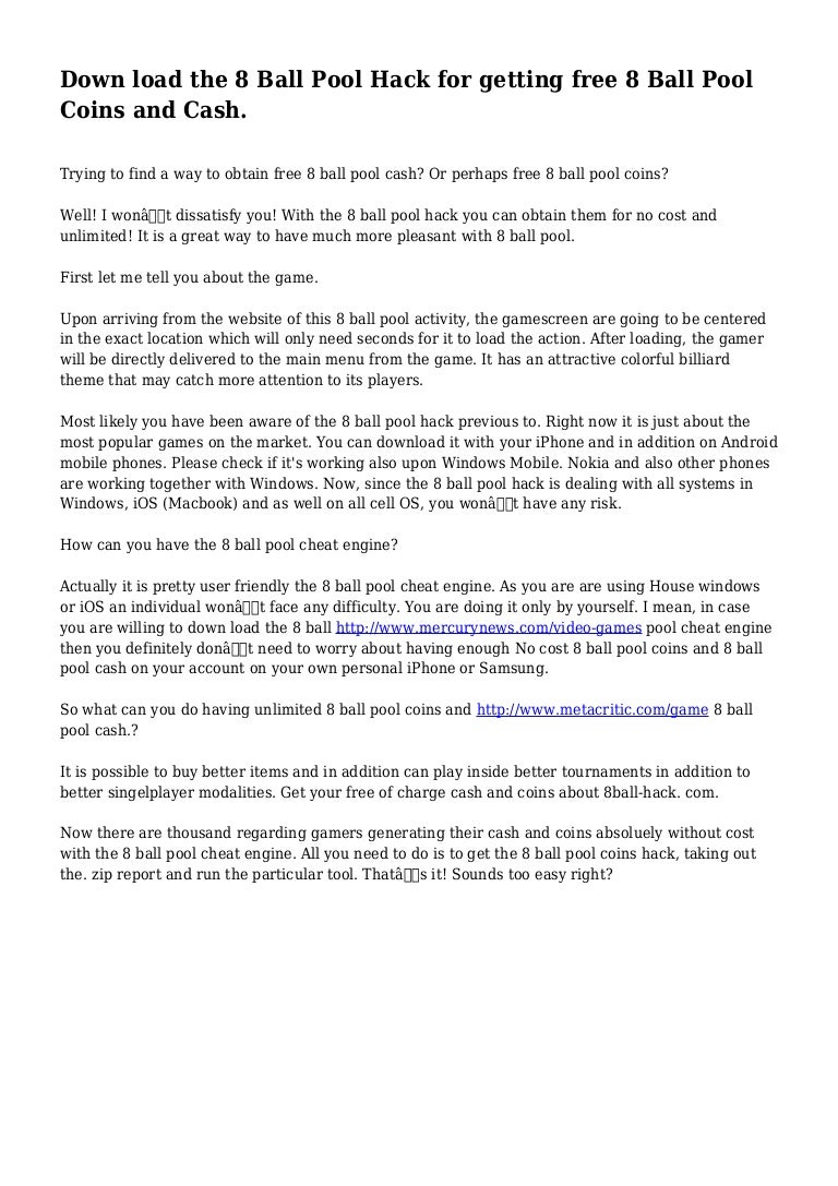 This tool not required any root or jailbreak. You can generate unlimited resources with our latest hacking methods. There is always an easy way to. Use our latest hack for 8 ball pool. I am going to show some screenshots below for you to get the better picture of how amazing this tool is for the meantime let's focus on the cash and.